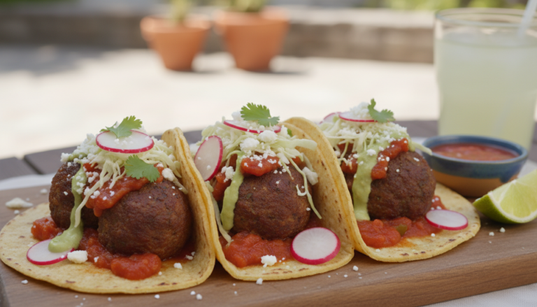 This recipe draws inspiration from sopa de albondigas, a traditional Mexican meatball soup that’s beloved for its comforting, homestyle appeal. In the soup version, tender meatballs simmer in a flavorful tomato-based broth with vegetables, creating a complete meal in a bowl. This taco adaptation takes those same beautifully seasoned meatballs and their rich sauce, then reimagines them in portable form. The concept emerged from the desire to enjoy those familiar albondigas flavors in a format better suited to Taco Tuesday—handheld, customizable, and perfect for casual dining. By concentrating the sauce and serving it with fresh garnishes in warm tortillas, we maintain the soul of the original dish while making it more accessible for weeknight meals and gatherings.