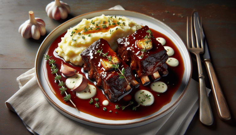 Recipe by Daily DisherMelt-in-your-mouth short ribs slow-braised in red wine over creamy garlic mash—pure indulgence on a plate.