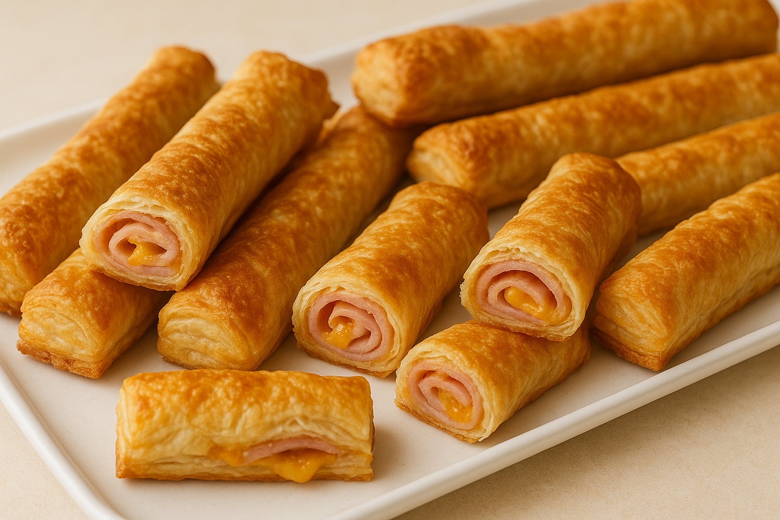 Ham provides protein and B-vitamins, while cheese adds calcium. Using puff pastry creates satisfying portion control since each stick delivers