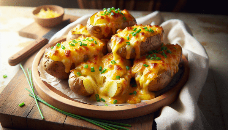 These Cheesy Loaded Twice Baked Potatoes are the ultimate comfort food indulgence, transforming simple baked potatoes into creamy, cheesy masterpieces that are almost too good to be true. Each potato gets the royal treatment—fluffy flesh is mixed with rich sour cream, melted cheddar cheese, and crispy bacon bits, then piled back into the crispy potato shells and baked until golden and bubbly. Topped with fresh green onions for a pop of color and mild bite, they’re perfect as a hearty side dish or satisfying main course.