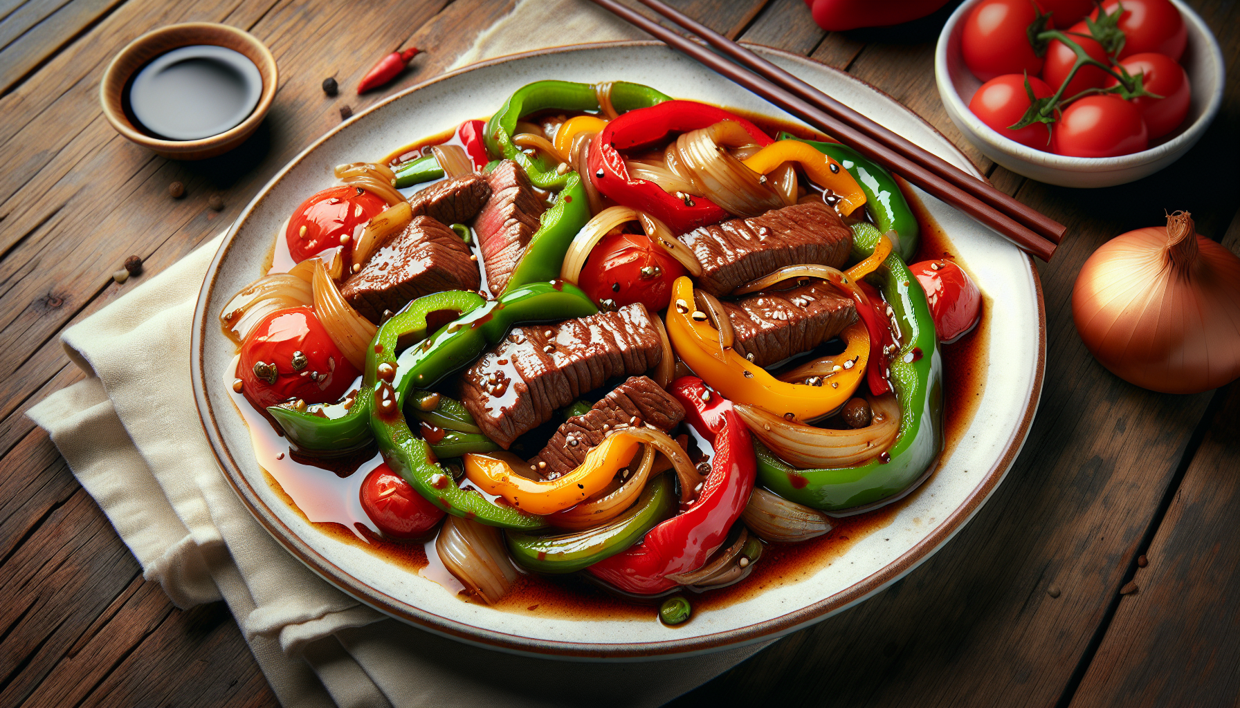 Chinese Pepper Steak features tender sirloin strips and crisp bell peppers tossed in a flavorful sauce with soy sauce, oyster sauce, and aromatic ginger and garlic.