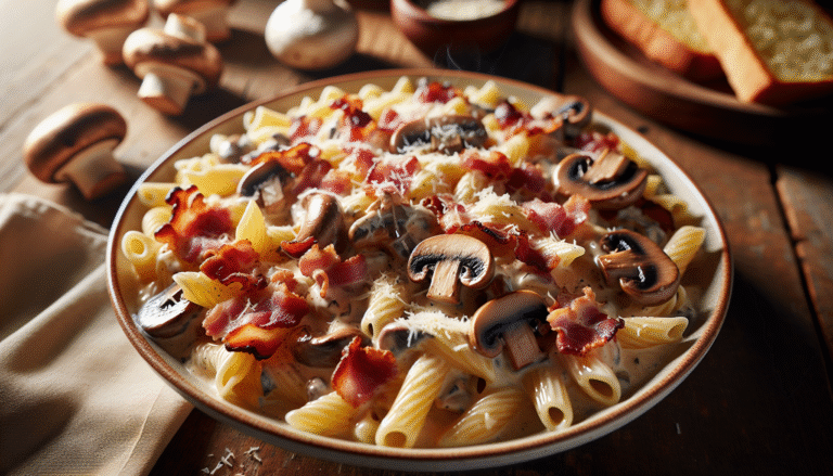 This Creamy Bacon Mushroom Pasta is the ultimate indulgence for pasta lovers, bringing together smoky bacon, earthy mushrooms, and velvety cream in perfect harmony. Crispy bacon adds satisfying crunch and rich flavor, while tender sautéed mushrooms contribute their meaty texture and umami depth. The luxurious Parmesan cream sauce coats every strand of pasta, creating that restaurant-quality richness you crave, while fresh basil adds a bright, herbaceous finish that balances all the rich elements beautifully.