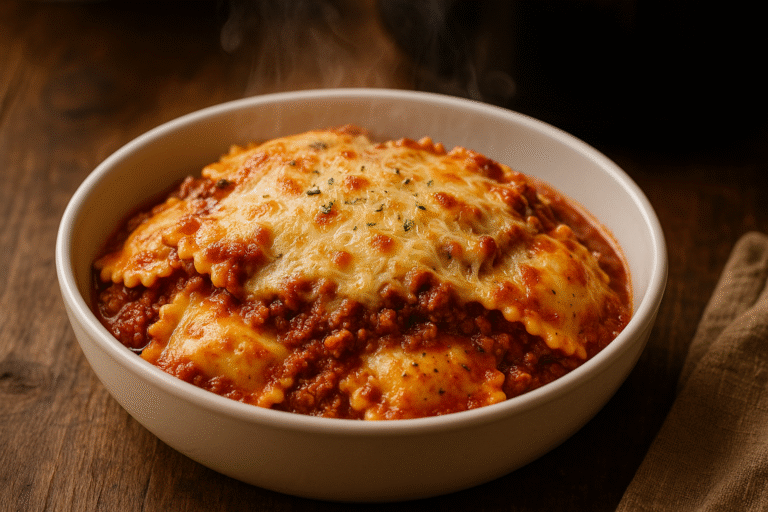 This Crockpot Ravioli Lasagna transforms the classic Italian comfort dish into an effortless slow cooker meal. Layers of tender cheese ravioli, seasoned ground beef in marinara sauce, and a trio of melted cheeses create all the flavors you love without the fuss of traditional lasagna prep. Just layer, set, and let your crockpot work its magic.