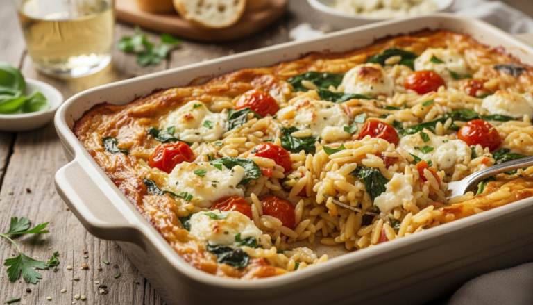 That contrast—creamy, herb-laced orzo underneath and golden cheese on top—is what makes every bite so satisfying. It’s also what makes this dish feel more like a proper dinner than a quick pasta toss. The oven transforms simple ingredients into something that feels layered, considered, and deeply comforting.