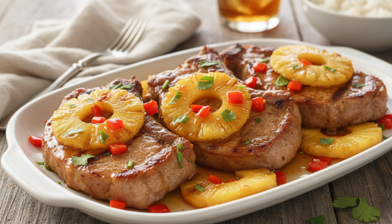 There are recipes that deliver a genuinely surprising amount of flavor from a remarkably short ingredient list, and Easy Pineapple Pork Chops is one of the most satisfying examples of that principle I know. Golden-seared pork chops simmered in a glossy, sweet-savory pineapple and soy glaze until the sauce is thick, sticky, and deeply caramelized—this is a weeknight dinner that looks and tastes like something that required real effort while asking almost nothing of the cook beyond twenty minutes of active attention and one good skillet.