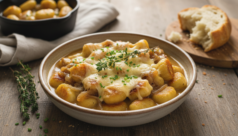 Some recipe ideas arrive fully formed and immediately feel inevitable—like the answer to a question you didn’t know you were asking. French Onion Gnocchi is exactly that kind of recipe. The moment you consider what French onion soup does best—those deeply caramelized onions, that rich, savory broth, the bubbling Gruyère blanket on top—and then imagine all of it wrapped around pillowy, butter-soft gnocchi, it becomes impossible to think about anything else until you’ve made it. This is one of those dishes that earns a permanent, uncontested spot in your comfort food collection from the very first bite.