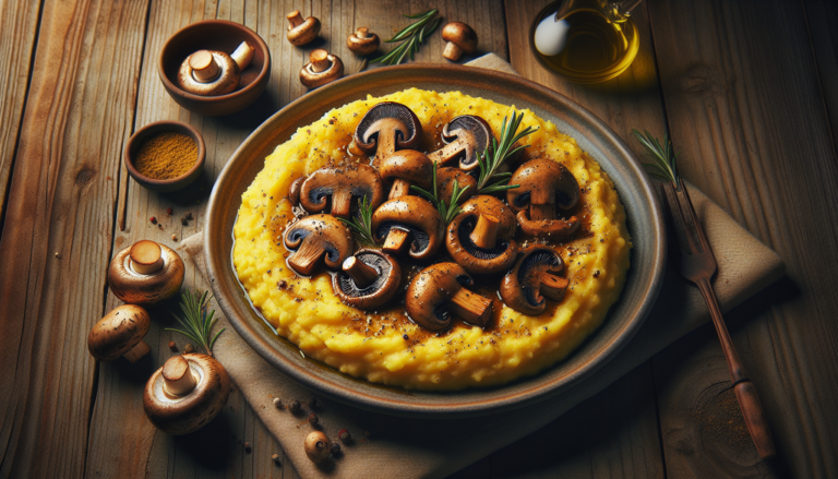 Polenta (cornmeal) is naturally gluten-free and provides complex carbohydrates and fiber for sustained energy. Mushrooms add umami flavor, B vitamins, and selenium while being naturally low in calories.