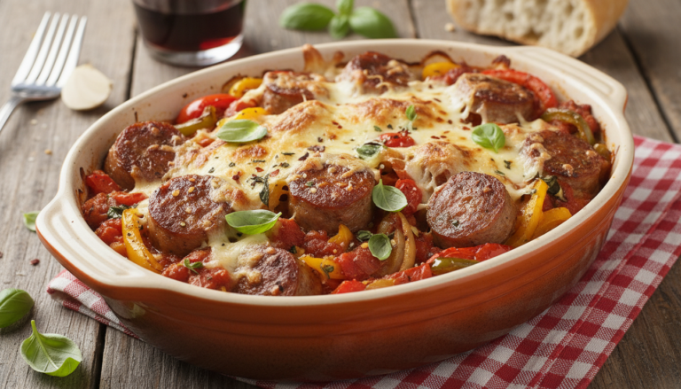 Italian Sausage & Pepper Casserole earns its permanent place in the weeknight rotation by delivering one of the most boldly flavored, most crowd-pleasing, most genuinely satisfying Italian-American dinner experiences achievable in under an hour. It’s the kind of dish that produces enthusiastic, unanimous approval at the table every single time—the kind where the casserole dish comes back to the kitchen scraped clean and everyone is already asking when you’re making it again. Practical, deeply flavorful, and endlessly comforting, this is Italian-American casserole cooking at its absolute finest.