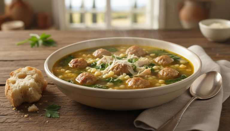 There’s something profoundly comforting about a bowl of soup that manages to be both elegant and homey at the same time, and Italian Wedding Soup achieves exactly that balance. Despite its romantic name, this soup isn’t actually served at Italian weddings—the “marriage” refers to the perfect union of greens and meat in the broth. But whatever its origins, this soup has earned its place as a beloved classic because it delivers layers of flavor and texture in every spoonful—tender meatballs, delicate pasta, fresh greens, and aromatic vegetables all swimming in a rich, savory broth.