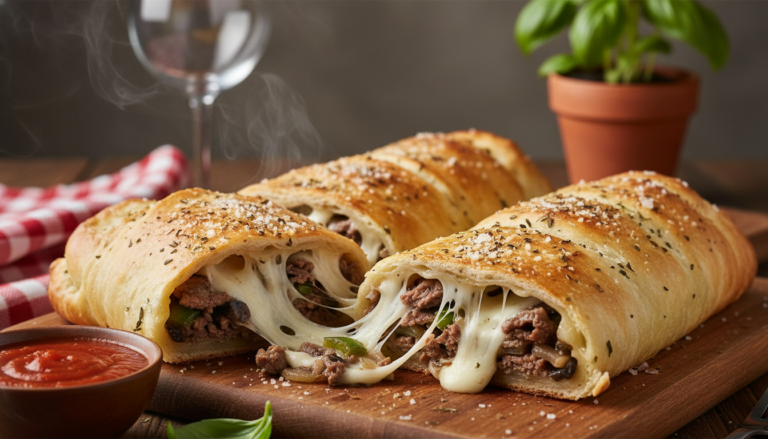There’s something undeniably satisfying about breaking into a golden, flaky stromboli and discovering tender steak and melted cheese inside. This Mozzarella Cheese Steak Stromboli represents the beautiful marriage of two beloved concepts—the Philadelphia cheesesteak with its savory beef and cheese, and the Italian-American stromboli with its portable, shareable format. The result is something that’s perfect for game day, casual gatherings, or those nights when you want dinner to feel like an event without requiring hours of preparation.